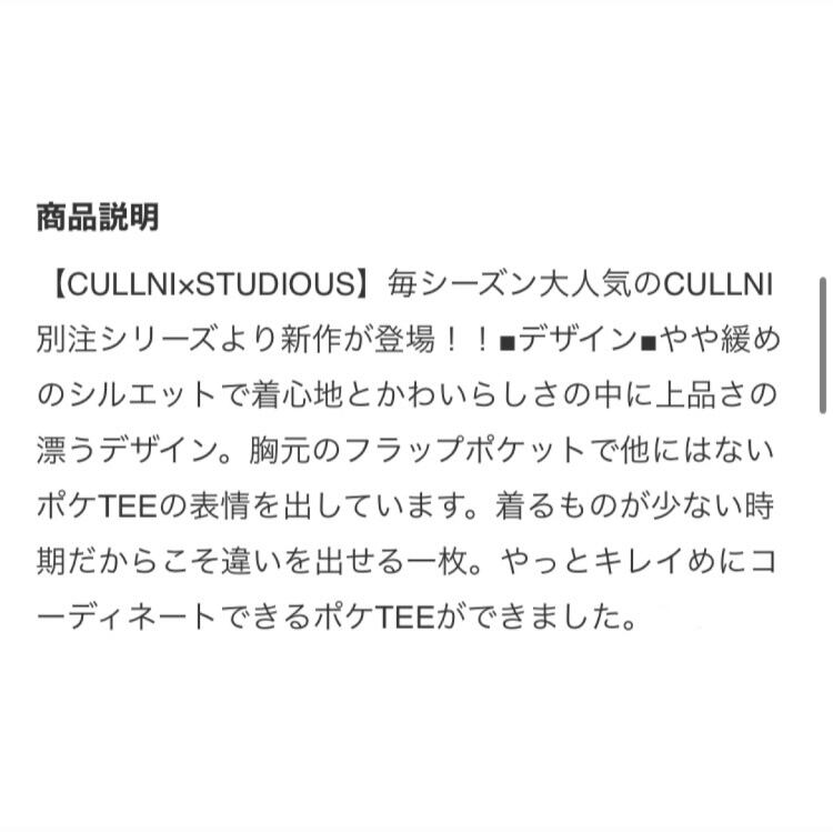 【人気】CULLNI クルニ STUDIOUS別注 LOOSE SS PO 半袖Tシャツ フラップポケット コラボ ステュディオス 定価19,250円 21-SS-056 | 古着ショップ☆PochIl☆
